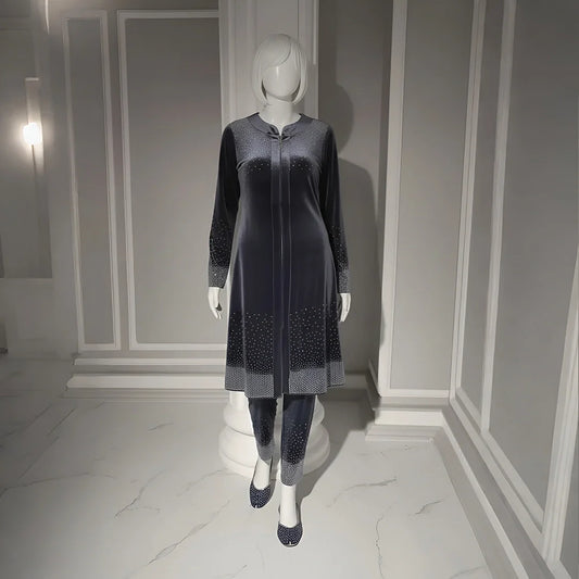 Premium Grey Velvet Co-Ord with Stone Detailing