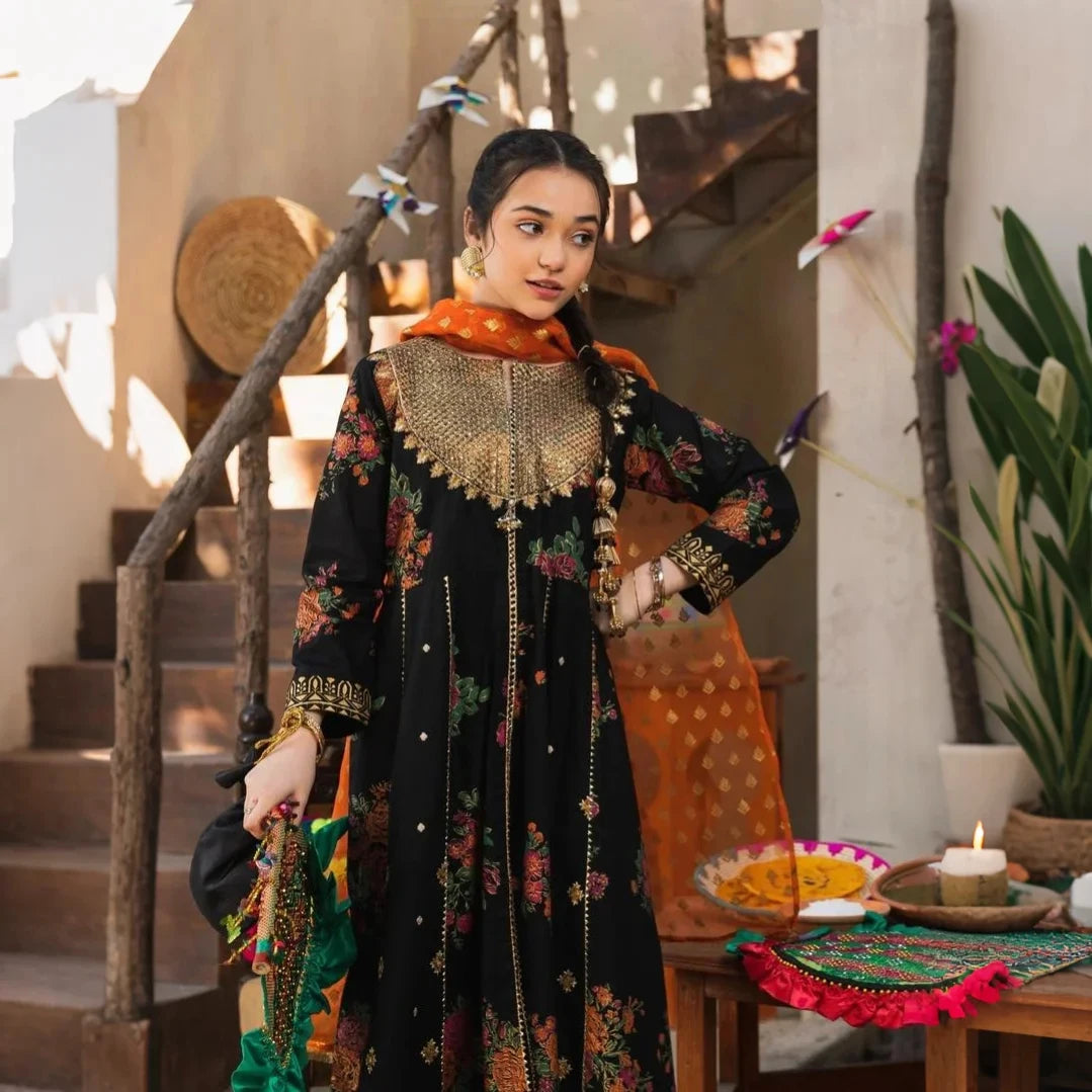 - Organza Dupatta with Afsan print & lace details.