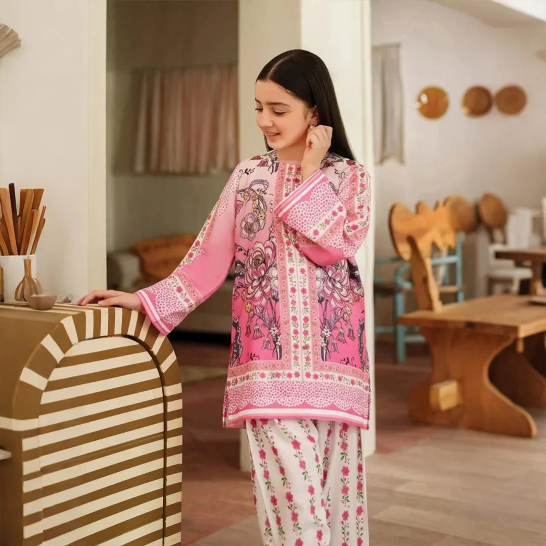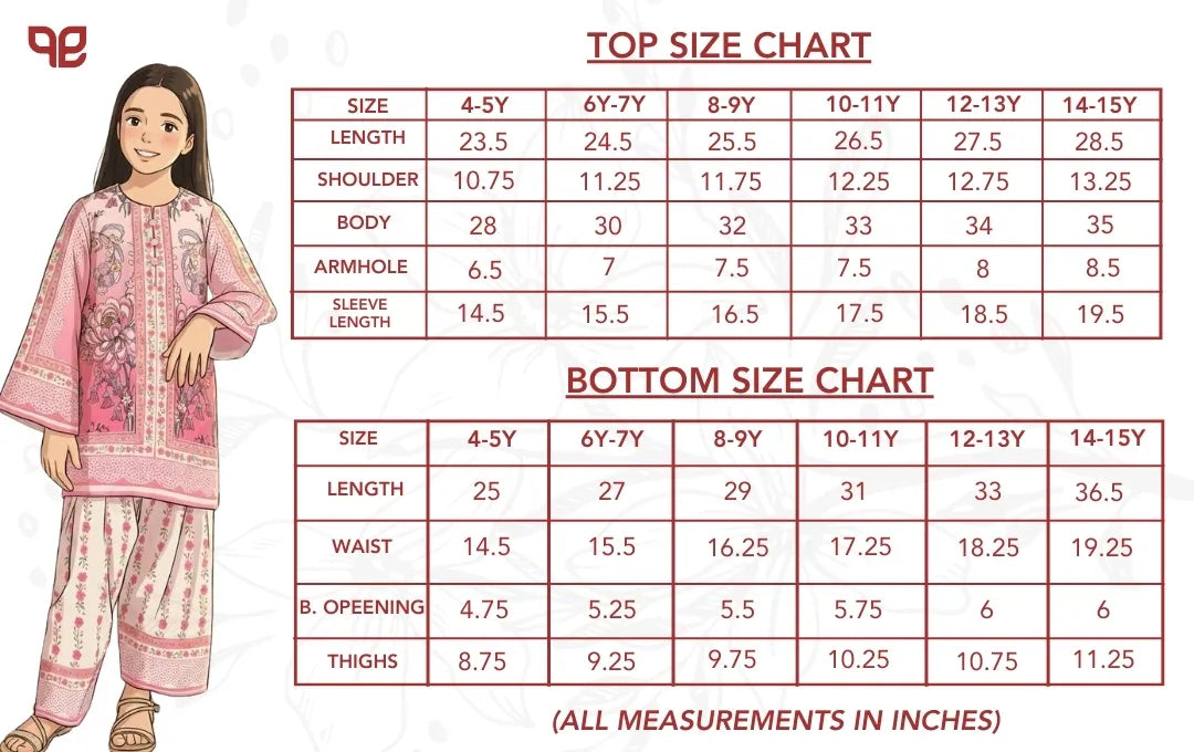 Crafted from premium soft silk fabric imported from China, this kidsโ co-ord set feels smooth, breathable, and lightweight on the skin. The bright floral digital print brings a cheerful and playful touch, making it perfect for festive events, family outings, and special occasions. ๐ฒ Product Details Fabric: Premium soft silk (Imported from China) Work Type: Digital sublimation print. Salwar Fabric: Premium soft silk (Imported from China). Waist: Free Size (Elastic & Expandable). Check the size chart for accurate measurements and choose the best fit. Both the top and salwar are made from the same soft fabric, giving kids a neat and matching look. The salwar comes with a comfy elastic waist, making it easy to wear and perfect for growing children. ๐ณ Size Guide (All Measurements in Inches) 4/5 Years: Long-23.5, Body-28, Sleeve-14.5 inch. 6/7 Years: Long-24.5, Body-30, Sleeve-15.5 inch. 8/9 Years: Long-25.5, Body-32, Sleeve-16.5 inch. 10/11 Years: Long-26.5, Body-33, Sleeve-17.5 inch. 12/13 Years: Long-27.5, Body-34, Sleeve-18.5 inch. 14/15 Years: Long-28.5, Body-35, Sleeve-19.5 inch. NB: Colour & print figures may be slightly different due to lighting, display variation or resolution. Feel free to contact us on WhatsApp or Messenger for orders and more information about this dress. Weโre here to assist you!