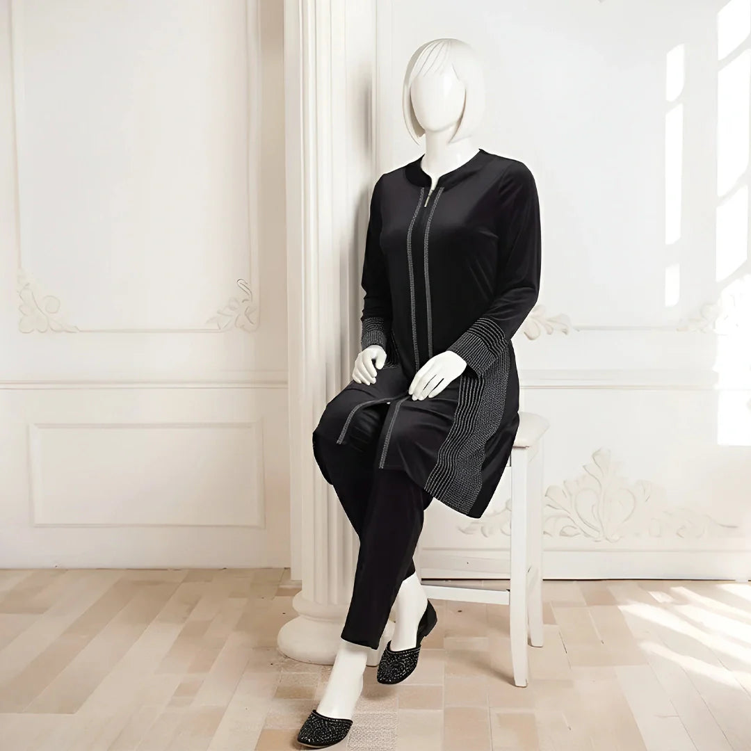 Black - Attractive Stone Work Velvet Co-Ord Set