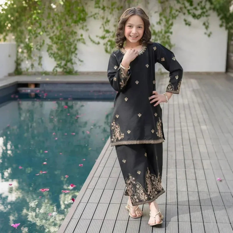 Watch your little star sparkle in the Hur Floral Embroidered Kids Suit. Crafted from premium breathable cotton, this outfit is soft, lightweight, and gentle on delicate skin, making it perfect for all-day comfort.