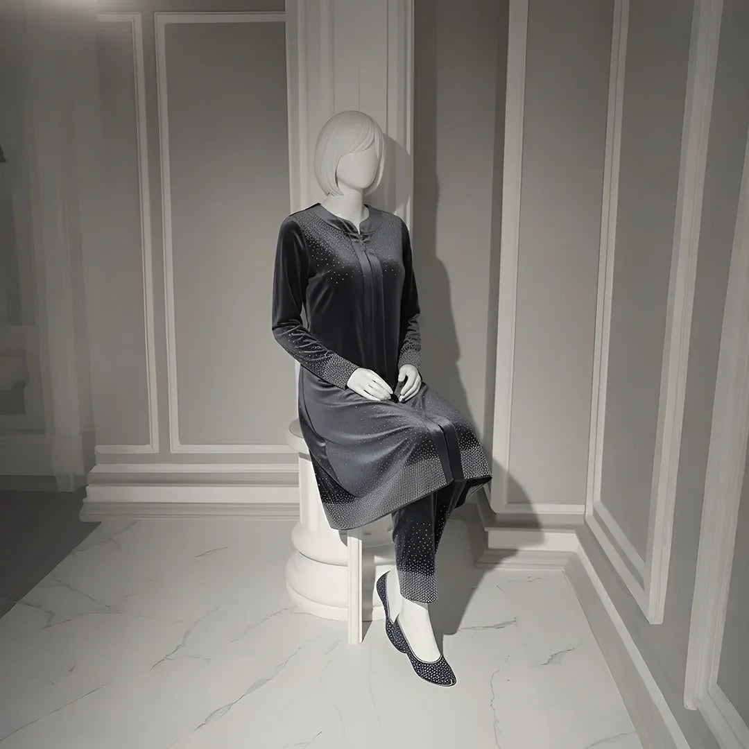 Premium Grey Velvet Co-Ord with Stone Detailing