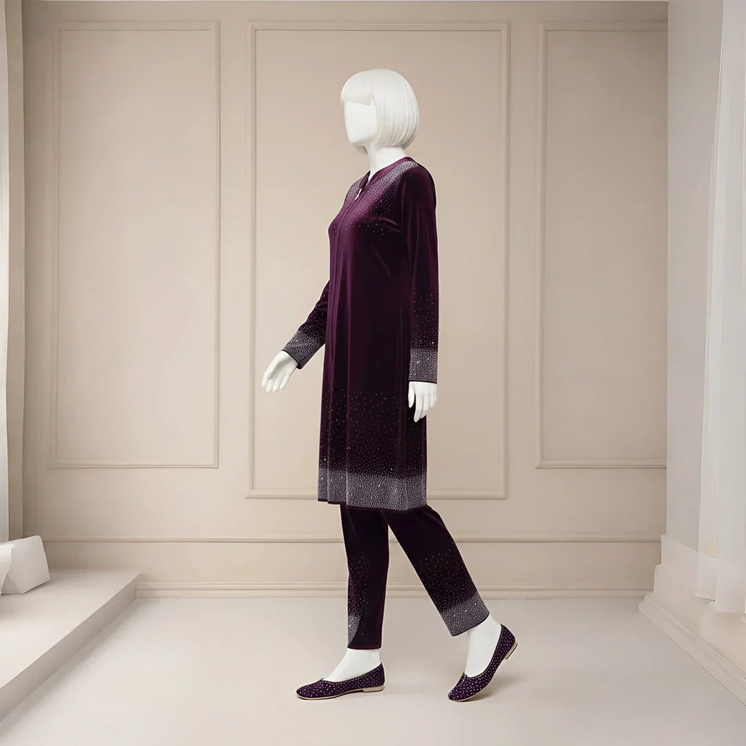 Premium Wine Velvet Co-Ord with Stone Detailing