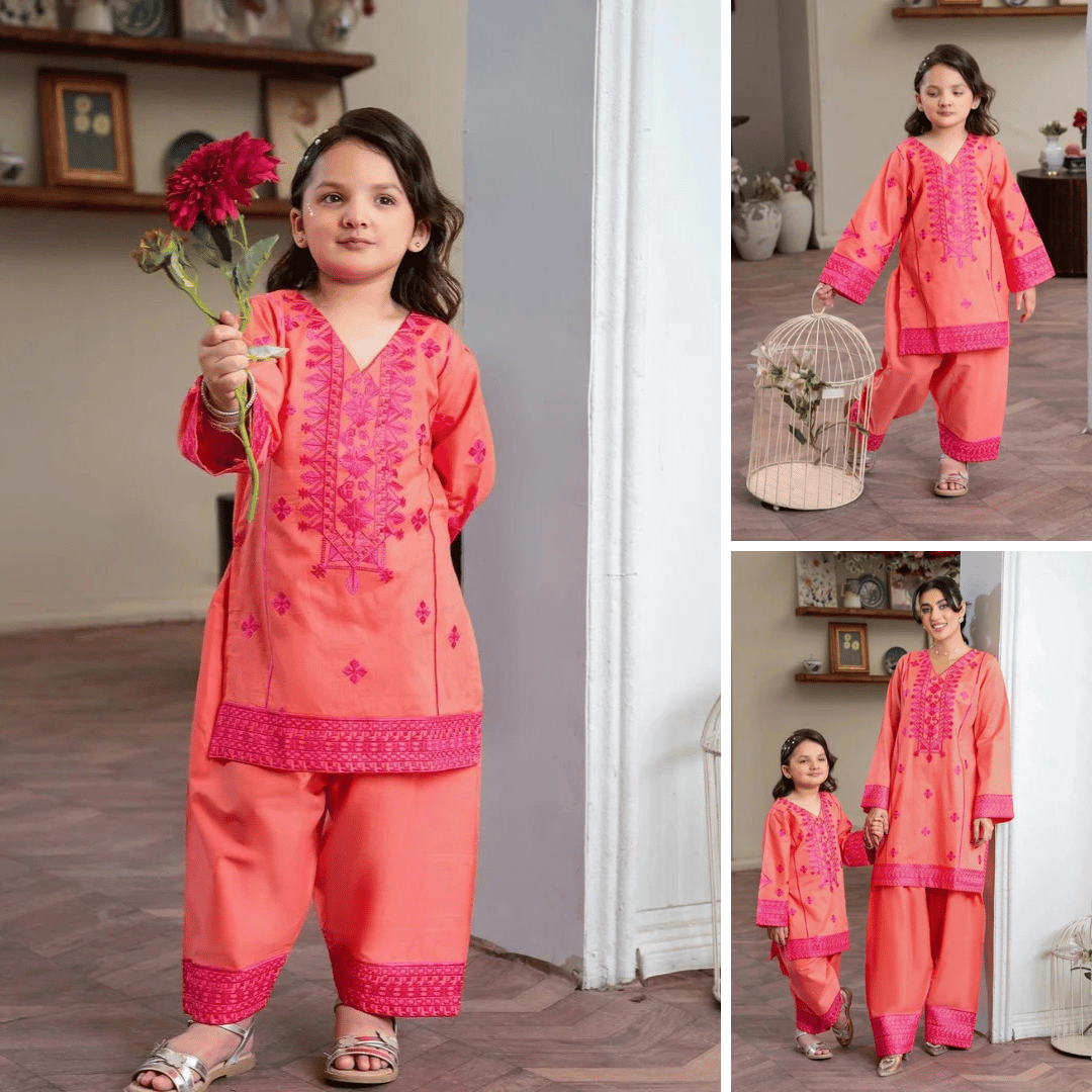 Let your child celebrate in style with the Raisa Festive Embroidery Kids Set. Make your childโs festive moments memorable with this high-quality kids' cotton suit, designed for style, comfort, and celebrations.