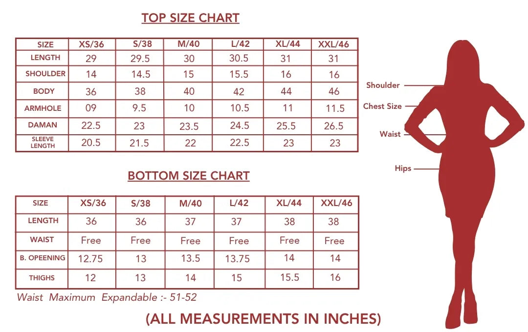 Available in sizes 36โ46 inches. Please refer to theย size chart below