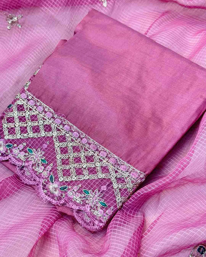 This beautiful suit set is designed to give you a graceful and festive look. The top comes with an attached inner and is decorated with jari suta embroidery and shiny sequin work, adding just the right sparkle. It has a kameez length of 42 inches and sleeve length of 19 inches, giving you a stylish and modest look. The matching dupatta also features the same embroidery and sequin details, making the whole set perfectly coordinated.