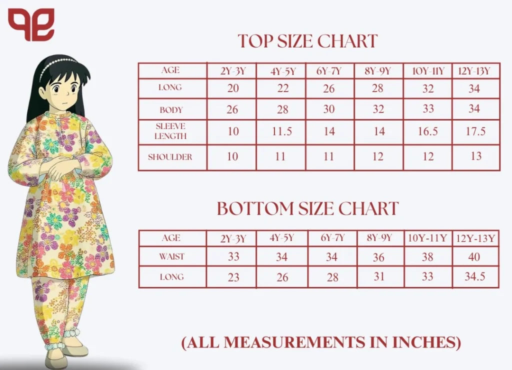 Sizes Available: From 2 to 13 yearsย (check size chart below)