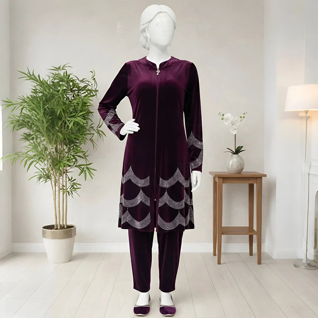 Elevate your winter wardrobe with this premium velvet co-ord suit, crafted to provide both warmth and refined elegance. The high-quality velvet fabric delivers a soft, luxurious feel while ensuring excellent protection during cold weather. đŗ Product details Fabric Type: Imported Velvet Care Instructions: Hand Wash Front Side: Zipper Neck Style: Round Stone: Original DMC Suitable for weddings, formal gatherings, and seasonal celebrations, this outfit offers a sophisticated appearance with timeless charm. A distinguished choice for those seeking a classic yet fashionable winter ensemble.