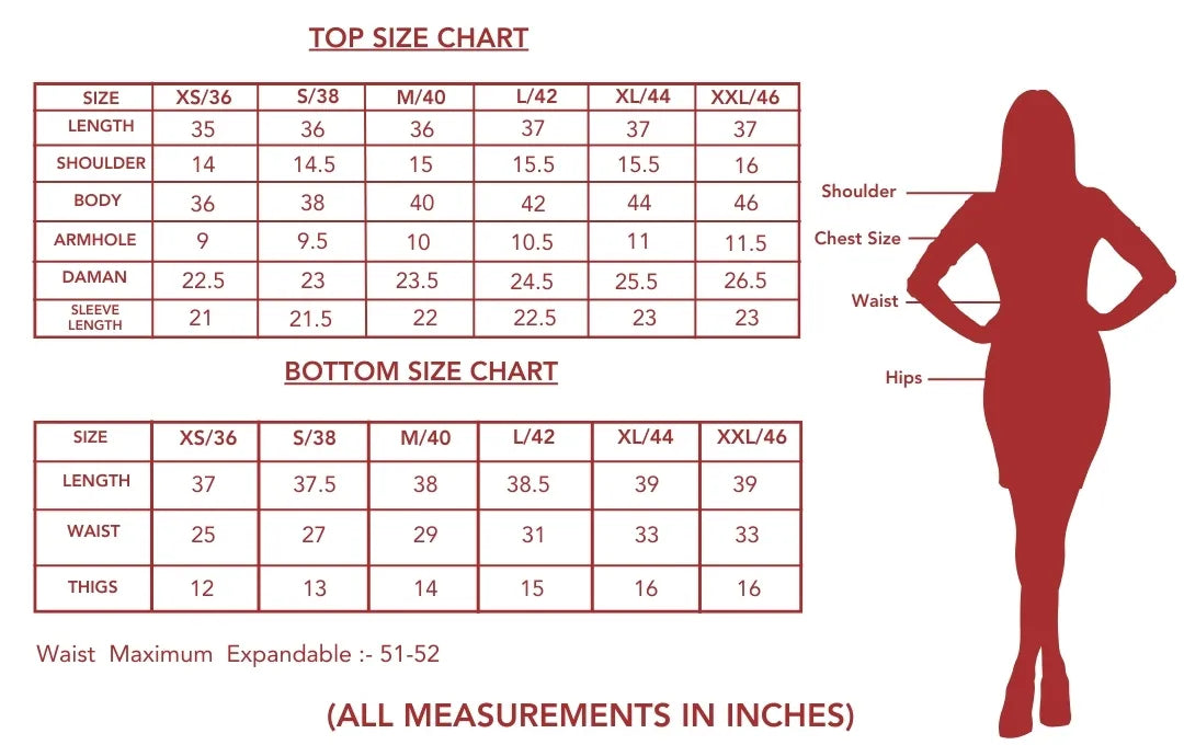 Available in sizes 36โ46 inches. Please refer to the size chart below