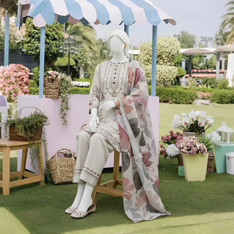 Look stylish and feel comfortable in this beautiful digital print silk suit. The top is made from soft imported silk with vibrant digital prints, giving it a fresh and modern look. The outfit comes with a 2.5-yard lightweight dupatta with a matching digital print, completing the elegant look.