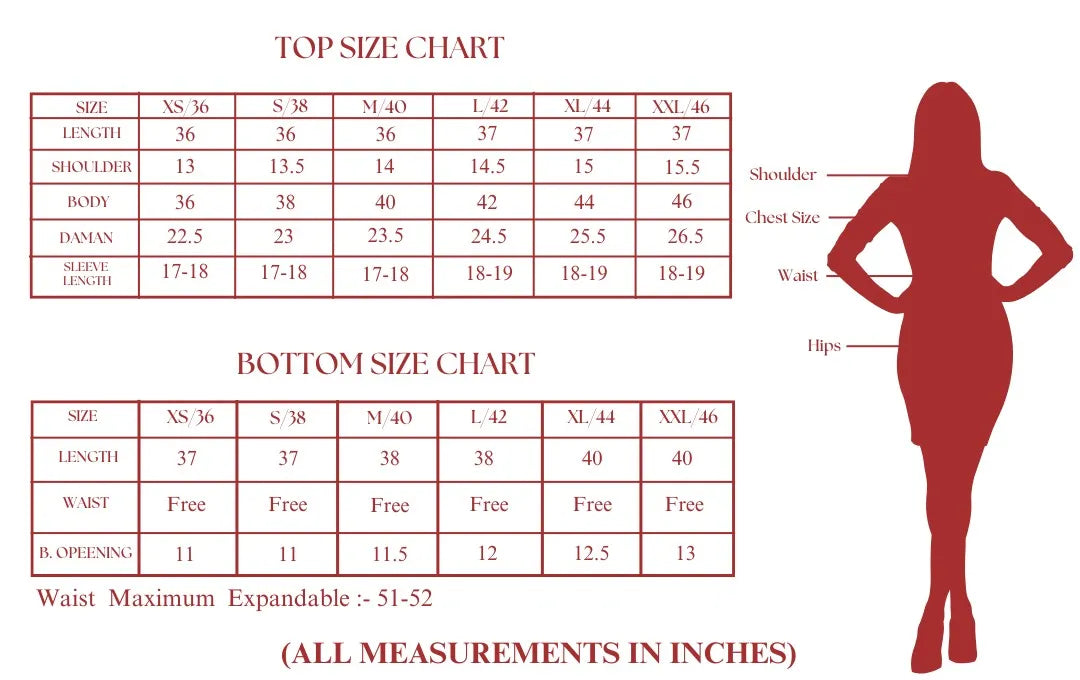 Available in sizes 36โ44 inches. Please refer to theย size chart below